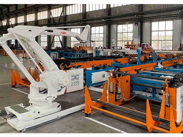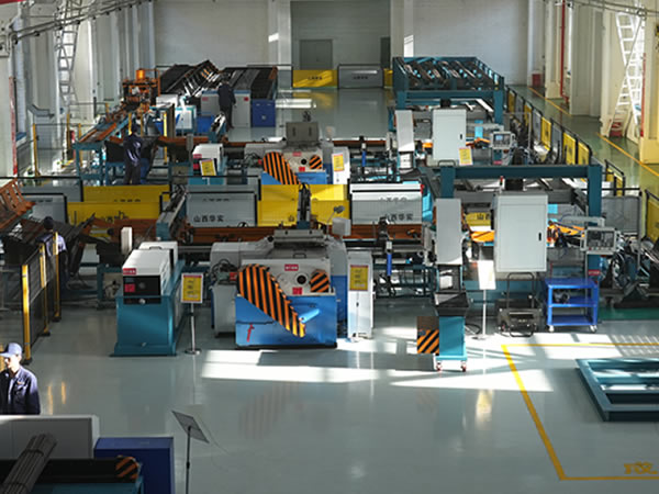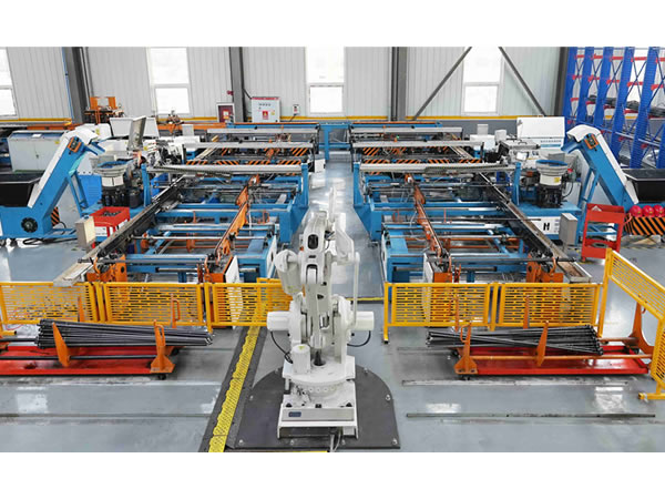該生產線從原料的自動上料、自動集料排序、多根定尺裁斷、斜角裁斷、組合式縮徑、液壓滾絲、防偽打標、讓壓管和組合墊自動旋裝、自動上母、鉆孔栽銷、蛇形沖壓、智能分檢、計數捆扎、成品碼垛實現了錨桿全自動化的生產模式。該條生產線彌補了傳統錨桿生產各個環節分離的缺憾,大大降低了勞動強度,提高了生產效率和產品質量,實現了錨桿產品安全生產的需求,推進了錨桿生產行業邁向全自動化生產的新時代。